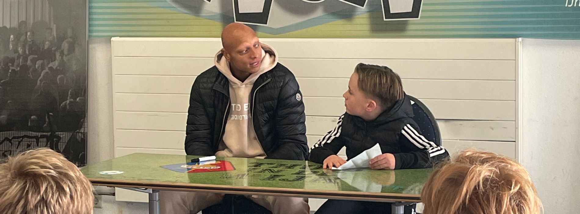 De deelnemers van Playing for Success hebben gisteren (donderdag 30 oktober), in samenwerking met TATA Steel, een bijzondere middag beleefd. Eerst gingen ze in gesprek met Telstar-speler Kay Tejan tijdens een spelersinterview. Ze stelden hem allerlei vragen, zowel over voetbal als over hun eigen leerdoelen.