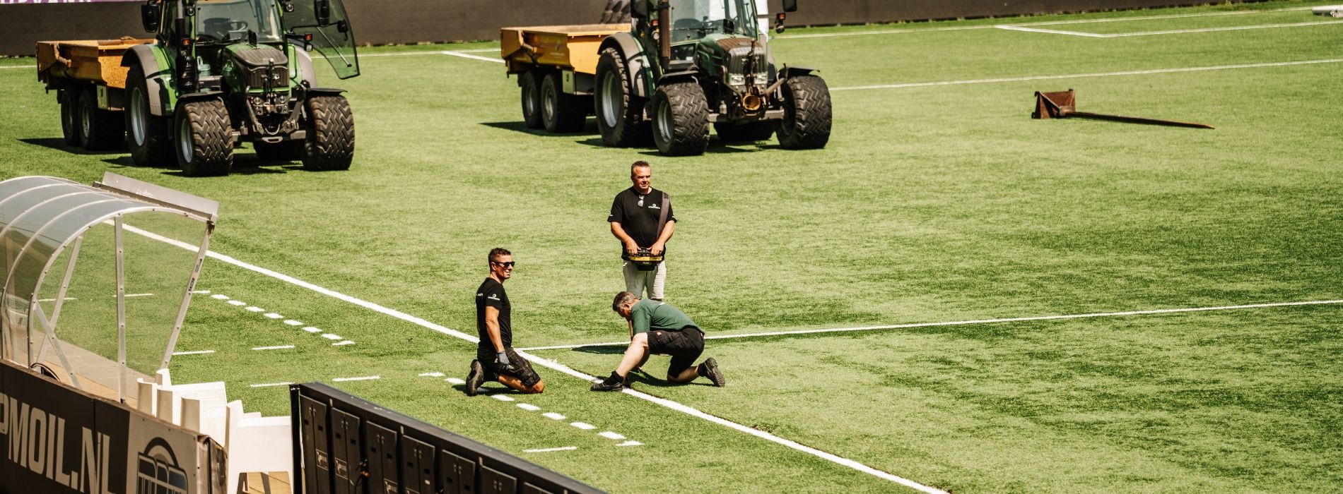 Voor dit project werken we samen met een team van gespecialiseerde partners, die ieder hun expertise inzetten om tot het beste resultaat te komen. Samen met dit bouwteam werken we de komende weken aan een veld dat voldoet aan alle eisen van de Eredivisie. Daarvoor gaan we eerst terug naar de basis: een nieuwe zandlaag, drainage, veldverwarming en een sproei-installatie.